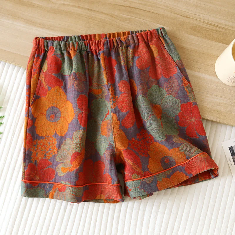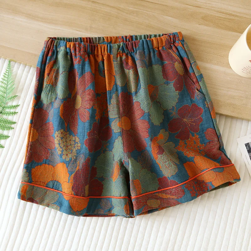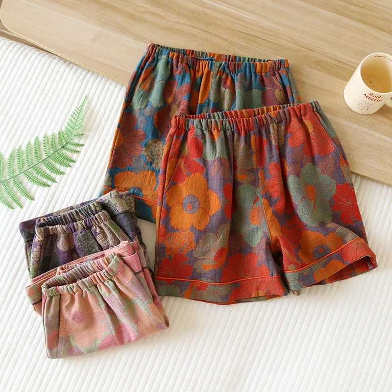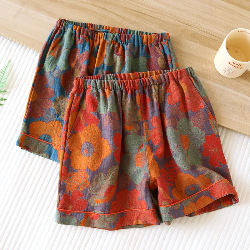 2025 New Summer Women's Pajamas 100% Cotton Shorts Yarn-dyed Jacquard Shorts Women's Loose Home Pants Thin Home Pants Pajamas