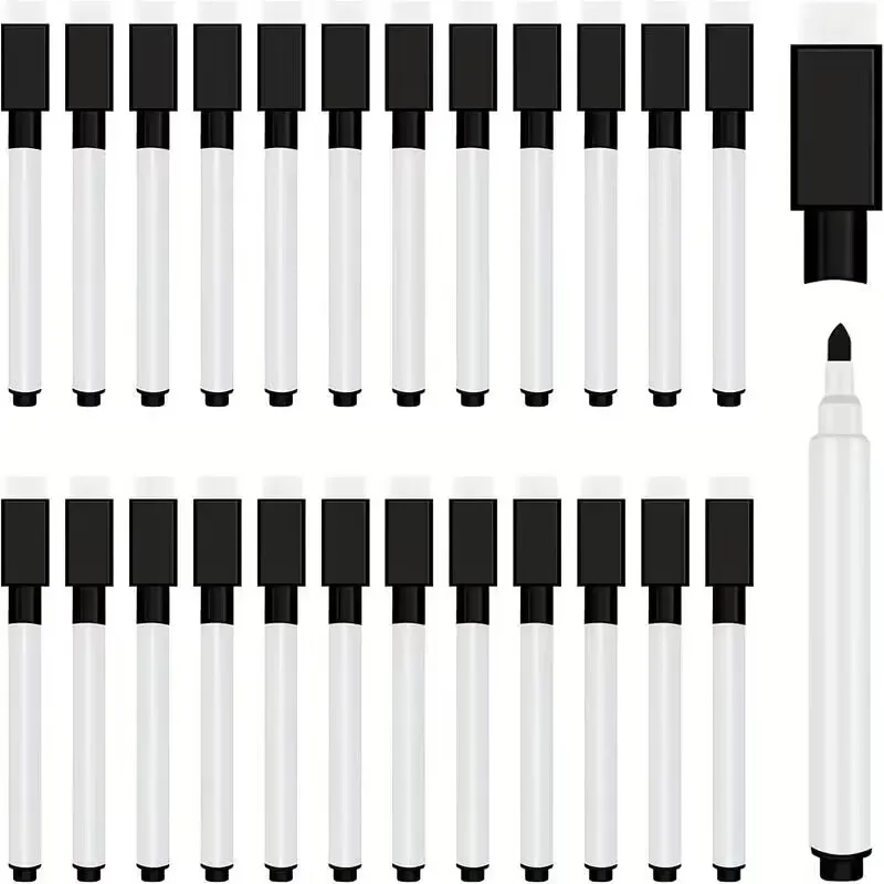 25Pcs Black Dry Erase Markers with Eraser Cap White Board Mini Dry erase Markers for Office School Supplies