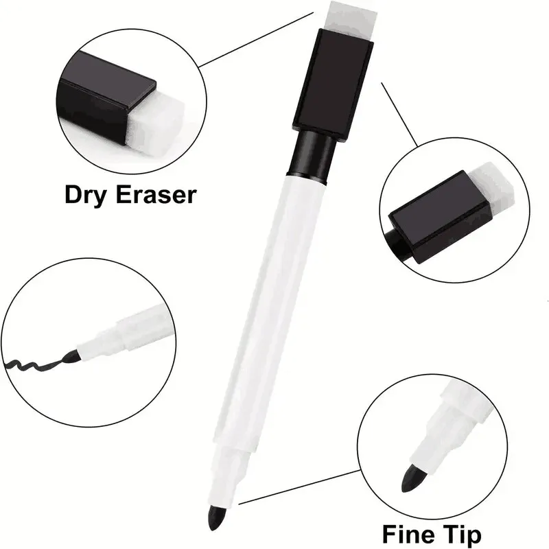 【Fast-Drying】The dry erase marker pen with eraser cap is dry and residue-free, no broken ink marks and no ink-leakage, no residue.