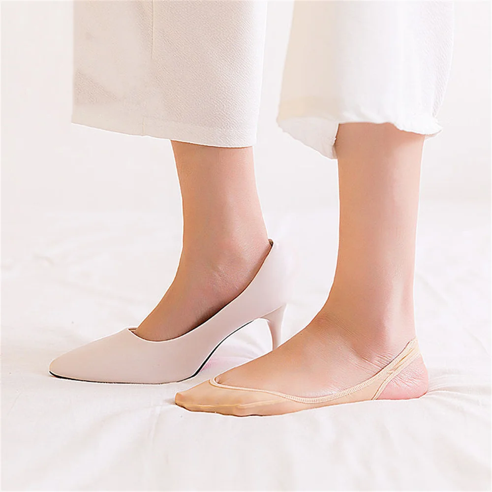 3 Pairs Invisible Cotton Pad Boat Socks Women's Summer Ice Silk Shallow Mouth Socks for High Heel Shoes Non Slip Silicone Sling