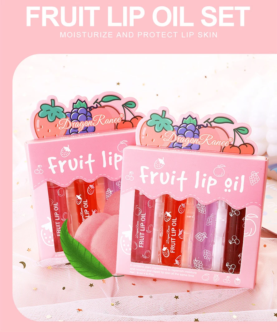 Very cute and fruit scent roll-on lip oil, different colors correspond to different fruit flavors!