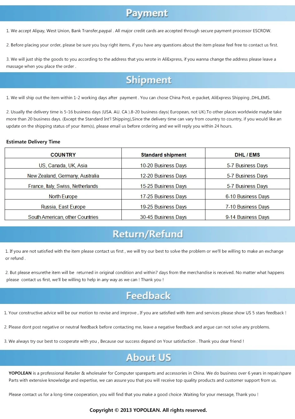 Standard: US / UK / SP / FR / DE/ RU / PT / SE / NO / IT / AE /KR ...(Optional)