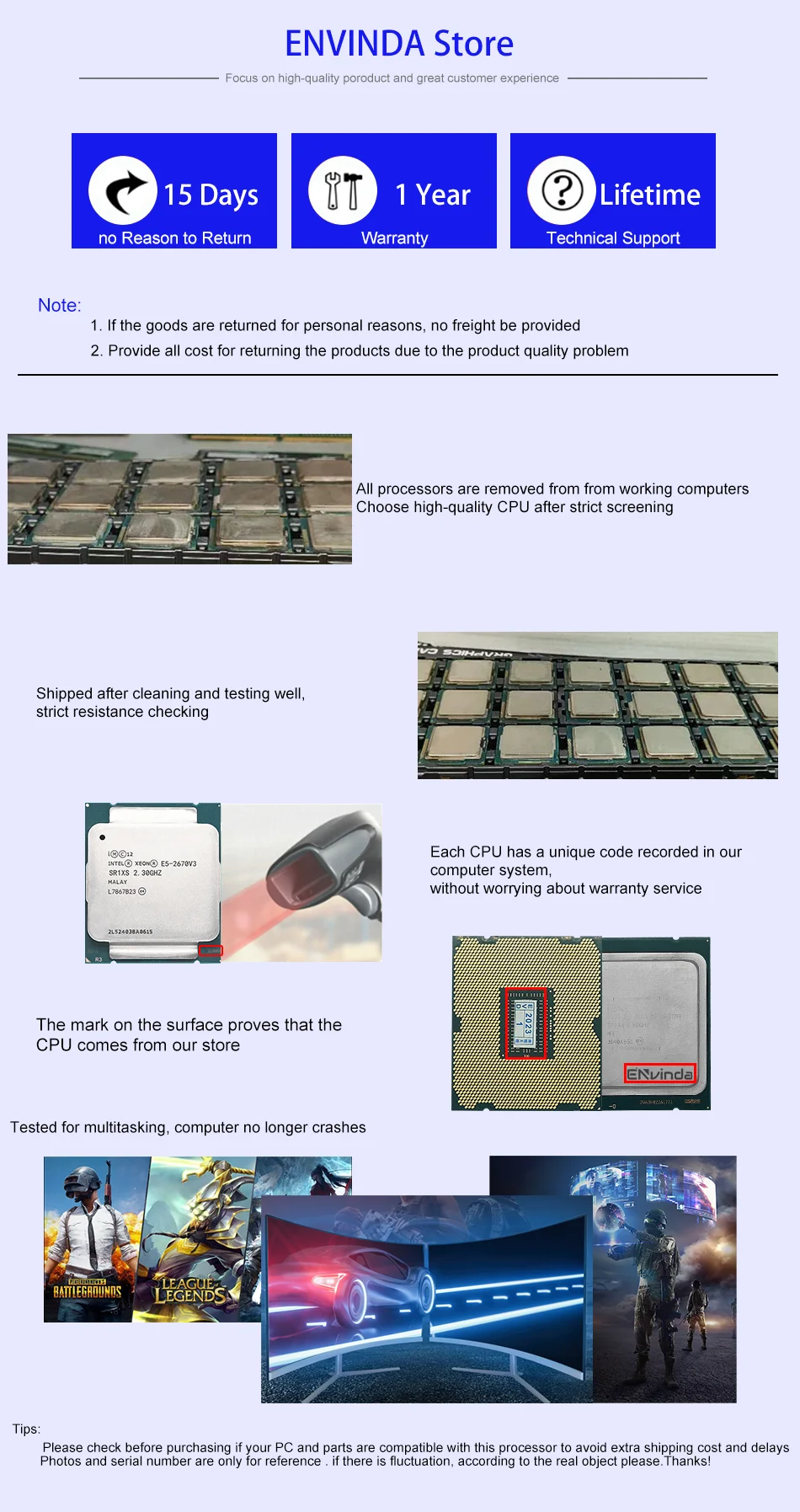 Our CPU is used, please do not place an order if you mind. Before each product is sent, it will undergo multiple strict quality inspections to ensure that the quality of the product passes the test before it will be packaged and shipped. Please rest assured to buy. We have a large number of CPU products of the same series, if you need to buy in large quantities, we will provide a very favorable quotation.