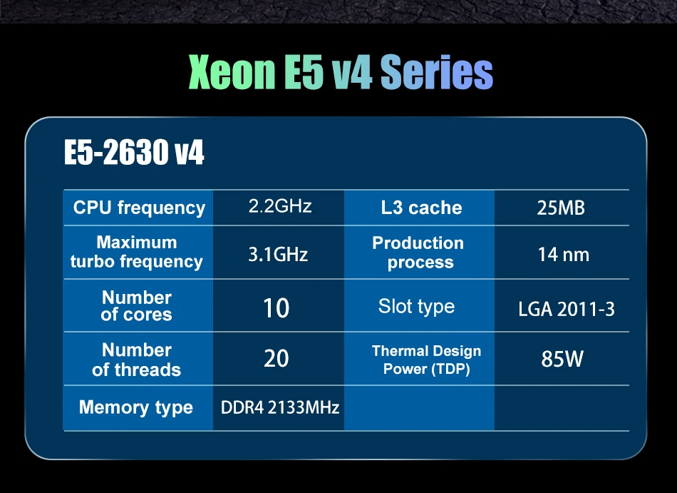 Used Original Intel Xeon E5 2630 V4 E5-2630V4 Processor SR2R7 2.2GHz 10-Cores 25M LGA 2011-3 Xeon V4 Series CPU