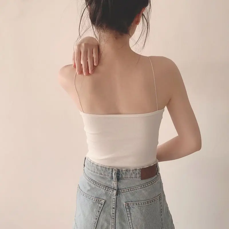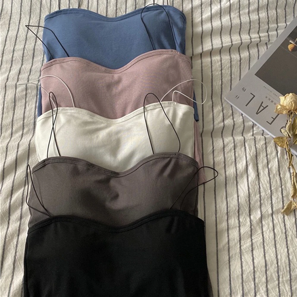Women Vest Tops Summer Sleeveless Cotton Bustier With Pads Soft Elastic Wear-resistant Vest Crop Top Thin Seamless Bralette